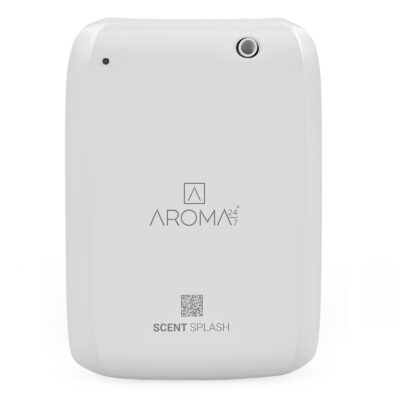 The Scent Splash Smart Diffuser, with a refined white casing and magnetic front cover, holds 250ml of fragrance, covers up to 180 cubic meters, and allows easy aroma intensity adjustment via Bluetooth, either wall-mounted or standalone.